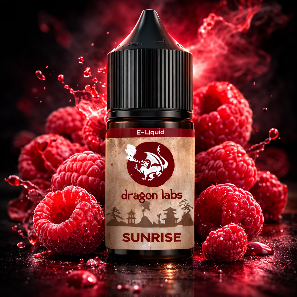 SUNRISE es un líquido para vapeo de base libre que captura la esencia jugosa de la frambuesa madura, equilibrando su dulzura natural con un sutil toque ácido para una experiencia refrescante y llena de sabor. Desarrollado por Dragon Labs.